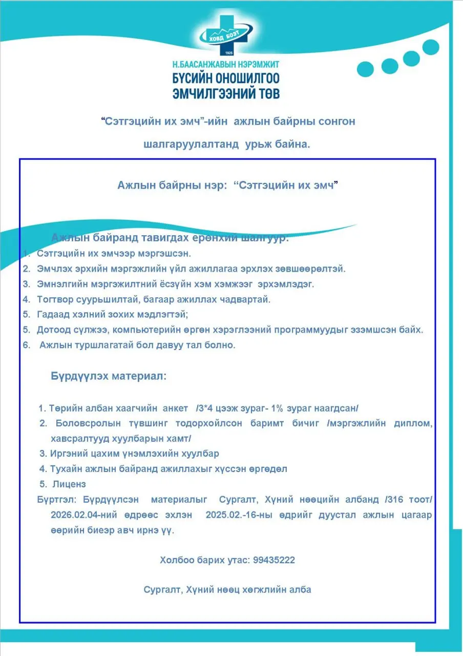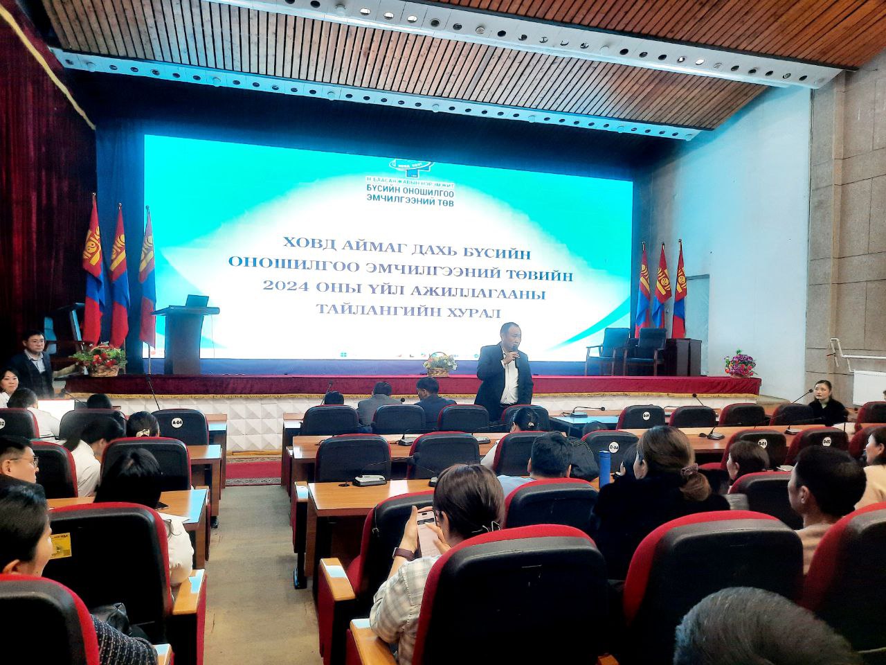 ХОВД АЙМГИЙН БҮСИЙН ОНОШИЛГОО ЭМЧИЛГЭЭНИЙ ТӨВД ШИНЭ СУВИЛАГЧ НАРЫН ЧАДАВХЖУУЛАХ СУРГАЛТ ЭХЭЛЛЭЭ.