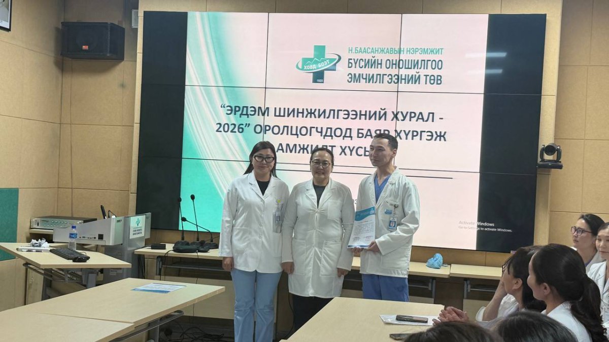 Ховд аймгийн Эрүүл мэндийн газар, Н.Баасанжавын нэрэмжит Бүсийн Оношилгоо, Эмчилгээний Төв (БОЭТ) хамтран эмч, эмнэлгийн мэргэжилтнүүдийн судалгааны ажлыг дэмжих, нотолгоонд суурилсан мэдлэгийг нэмэгдүүлэх, шинэ санаачилгыг эрүүл мэндийн тусламж, үйлчилгээнд нэвтрүүлэх зорилгоор 2026 оны 03 дугаар сарын 20-ны өдөр БОЭТ-ийн Сургалтын танхимд эрдэм шинжилгээний бага хурлыг амжилттай зохион байгууллаа.